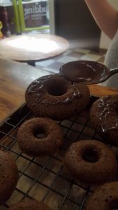 Excitement grew when we decided that the doughnuts needed to be decorated with chocolate icing and sprinkles! The icing gave the doughnuts the right amount of sweetness since the doughnut itself was a bit on the conservative side of sweetness.