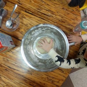 You must be worried about germs because we’re touching toys around the daycare and then touching the dough that we’ll eventually be eating. This created a perfect opportunity for me to teach the Big Kids about proper hygiene and food safety!