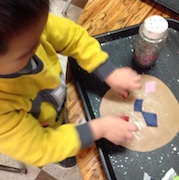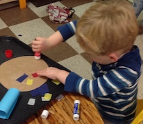 To introduce the phases of the moon, we watched The Girl Who Married The Moon, where the moon’s wife wants to help him light the world, and accidentally gets one of his beautiful masks stuck to her face. We made our own moon masks, but Jackson didn’t want to wear his, because he was afraid it would get stuck.