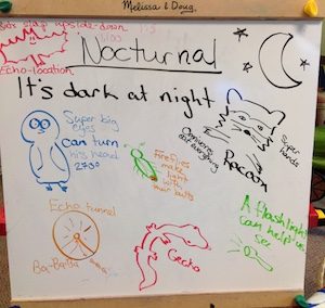 We also went on another fieldtrip (there are some pictures below), and last week, after playing their favourite songs and videos again, I tried to move things into the second phase of the Good Night program: Nocturnal Animals. We didn’t get far, though.