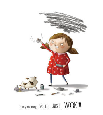 In the book, the regular girl has a plan. She hires an assistant, gathers supplies, and gets to work. When it doesn’t come out right she gets frustrated.