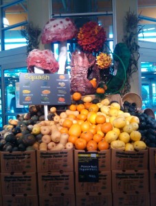 On my recent visits to the Whole Foods Cambie store, I’ve been struck by all the beautiful fall displays and the abundance of delightfully-tasty-looking fall produce. As the Bloom kids and I explore the world of fall with the help of our gnome friends, I thought visiting the store would be a great opportunity for them to explore some of these displays that I’ve been enjoying and to see what kinds of produce are available at this time of year.