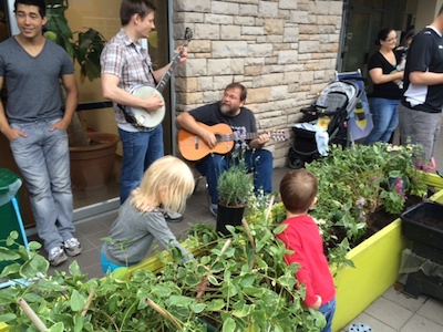 We lived up to our name (Budding Children’s Garden), by having the kids plant our big green garden boxes, and made it fun by having them serenaded while they worked!