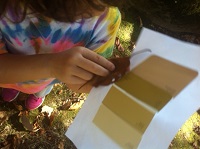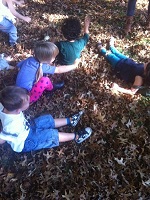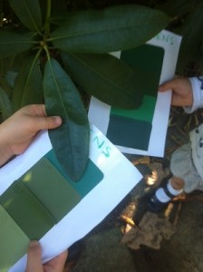The kids found so many different things on their walk. From mushrooms, to different coloured leaves, to sticks and mossy rocks. We used all our senses – listening to the rustle of the crunchy leaves, smelling some flowers, feeling the rough rocks, and comparing different colours of things in our nature collection. There was no tasting except for our yummy snack. We played Colour Detectives, each of the kids was given a colour chart and asked to use their keen detective skills to find something in nature that matched one of the colours on their chart. There was a lot of enthusiastic hoots and hollers for this game “I found green!” and “This stick is matching!”