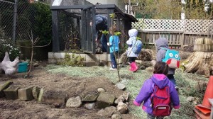 Things have been pretty egg-sellent around Buddings lately, with new spring programs, more daylight, and new life abound! In Big Kids Club we’ve been talking a lot about all the different animals that hatch out of eggs. To get an extra special hands-on egg-sperience we ventured out to Le Marché St. George where owner Pascal showed us le Marché’s backyard chicken farm!