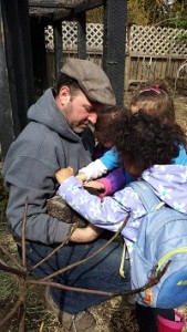 Once the feeding was done, Pascal helped us pet Shadow, the tamest of the brood. Considering she was being fondled by excited preschoolers, Shadow did very well.