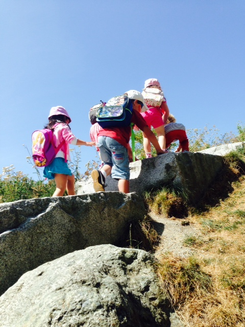 Right after we went through the tunnel we arrived at some pretty big rocks that we used as stairs to climb all the way up the hill. It was pretty tricky! Some of the kids were struggling to climb them but with a little bit of help from Jen and I, they did it and when we got all the way to the top of the hill we shouted “Yey, we did it!”.