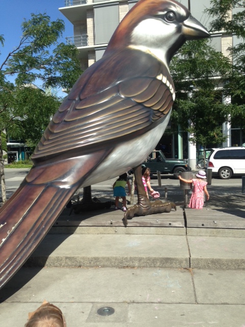After we had explored the island we decided it was time to go and look for the big birds. However on our way we saw all sorts of cool things such as colorful statues in the shape of people and spinning chairs. None of the kids wanted to leave but we promised them if we left we would see some big birds.