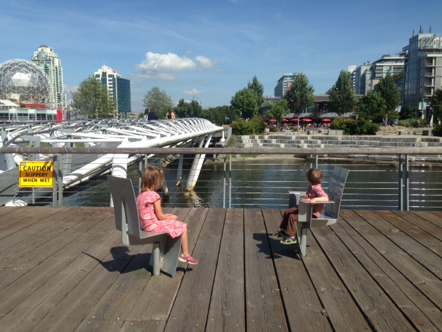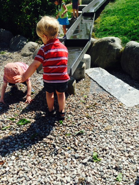 Our big kids were pretty excited about what they saw at the top of the hill! It was a big water pipe that when you pushed a button, water started to fall down out of it and it split two ways down the hill. It was a pretty hot day so it was a fun way to cool off a little bit by touching the fresh water.