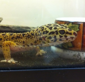 One winter’s day, the gecko was sluggishly dozing on his rock when his lunch dropped in from the top of his world. Crickets, surprised by their fall, and wary of the predator waiting for them, hopped frantically about, launching themselves against the walls of the tank, into the cactus plant and even landing on the sleepy lizard.