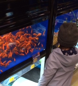 At the pet store, she watched the birds in cages, and played follow-the-finger with the tetras. We saw hamsters and mice, and a friendly bearded dragon who seemed to want to come home with us. But we weren’t sure our gecko would welcome a roommate. She spoke to the ladies at the store, politely (as always), but little.