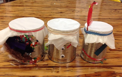 Inspired by the heartbeat and rhythm of the djembe drum, the kids made their own drums out of tin cans and parchment paper.