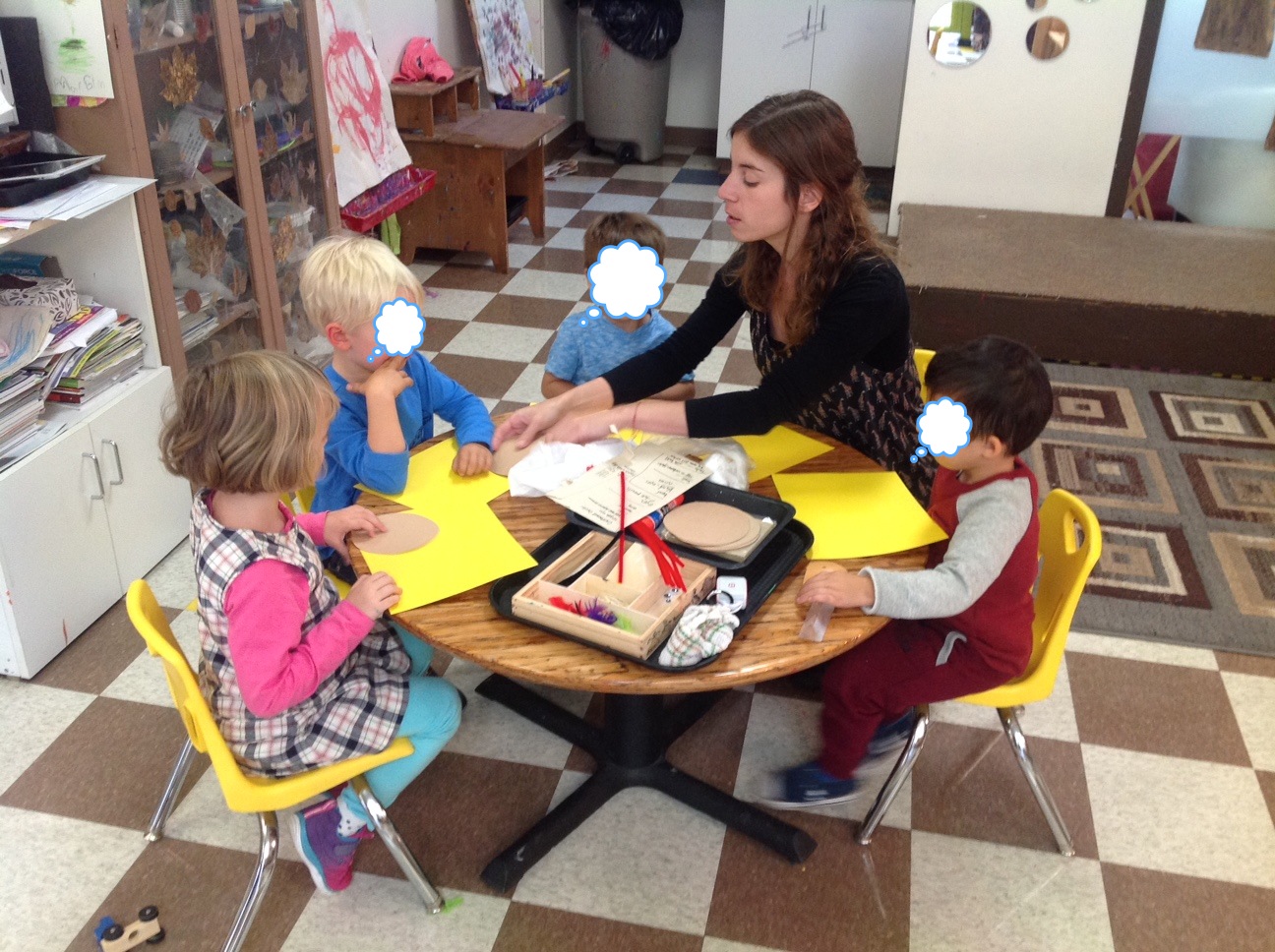As soon as we finished reading this amazing story, we jumped into our hands-on activity called “Five Senses Self-Portrait” which consisted on using different objects to identify the 5 senses of the human body and how we relate each of them to something we can see over the table (using our eyes π ).