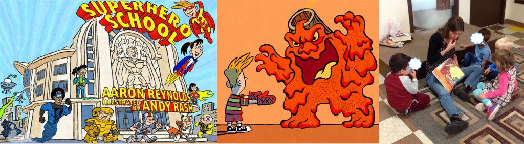 Superhero School’s story by Aaron Reynolds was the best way to get our big kids into the use of our senses and how important they are. Leonard, the kid in the story, is no ordinary kidβhe’s enrolled in Superhero School, where leaping tall buildings in a single bound is considered child’s play but also it’s a place where a lot of kids with “special powers” attend. Some of them can’t use their eyes, so they have X-ray vision, others can’t use their legs so they have Titanium legs. Here’re some cool images from the book + link with info: