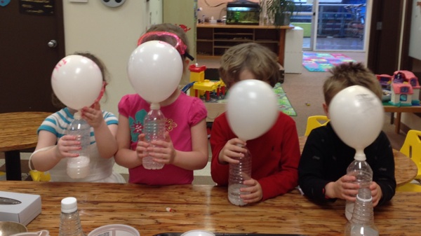 Goggles in hand, we also discovered another kind of magic ― chemical reactions! Simply by adding two ingredients, vinegar and baking soda, our balloons magically inflated all by themselves! That sure made us feel pretty powerful…